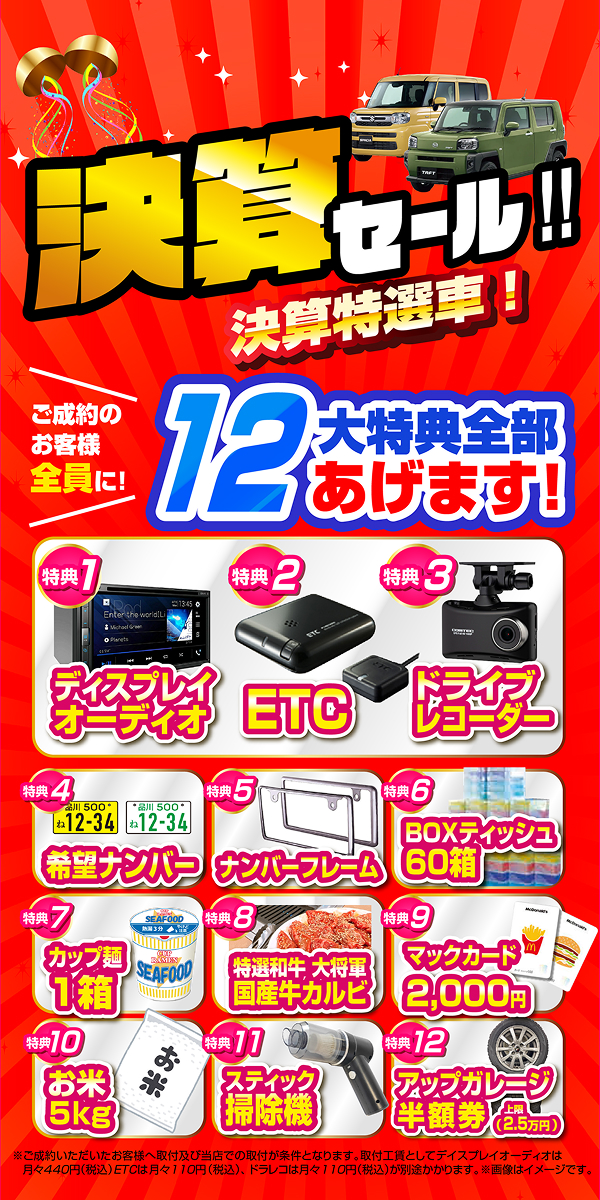 フラット7、ウルトラ車検、ニコニコレンタカー、アップガレージ他